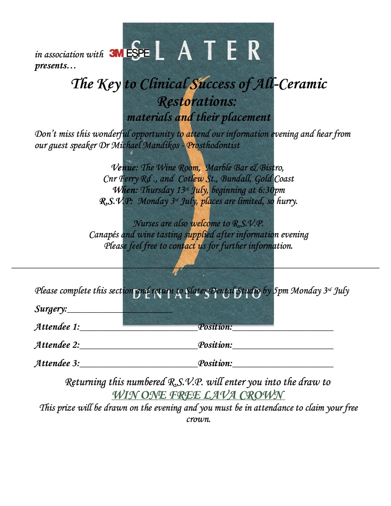Hands on Workshop. *Sponsored by 3M ESPE.