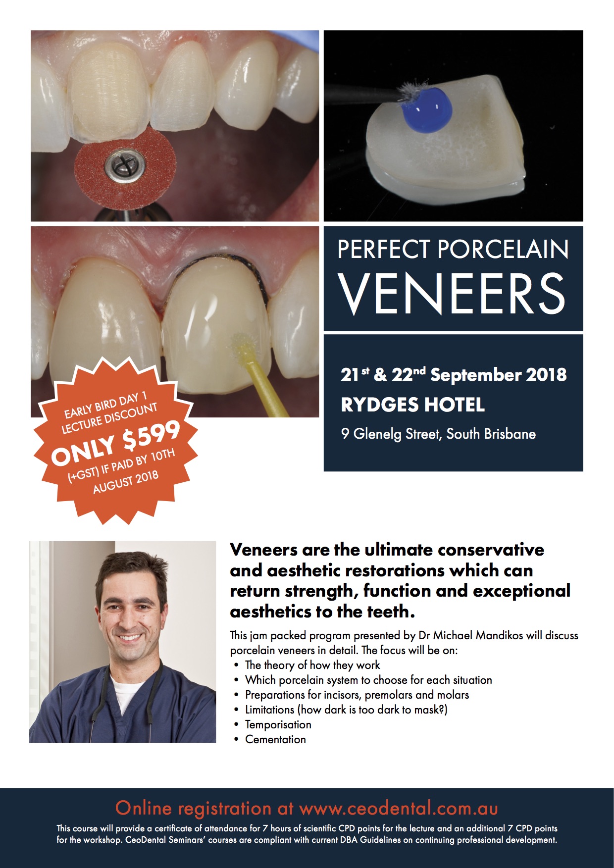 This jam packed prgram presented by Dr Michael Mandikos will discuss porcelain veneers in detail. The focus will be on:
